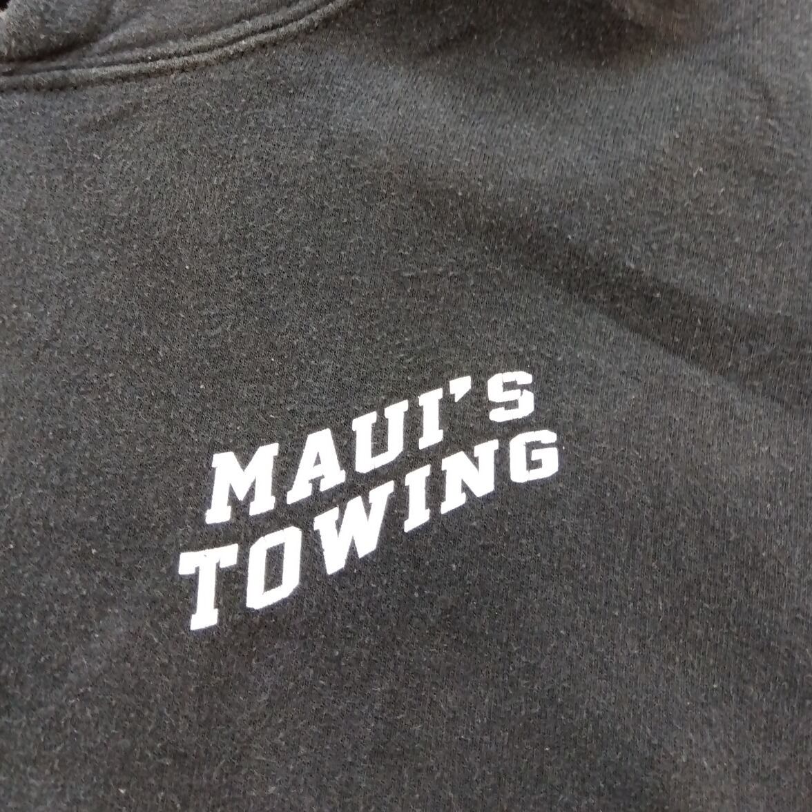 ※古着 【00s GILDAN モーターカルチャー】MAUI'S TOWING 両面プリント プルオーバーパーカー(Lサイズ)